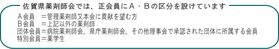 | 佐賀県に在住または在勤の薬剤師資格をお持ちの方及び薬学生 ※佐賀県薬剤師会に入会されますと、自動的に日本薬剤師会の会員となります。 (薬局・一般販売業・卸売一般販売業・病院・診療所・製薬関係・公務員・研究機関・医薬品販売など) |