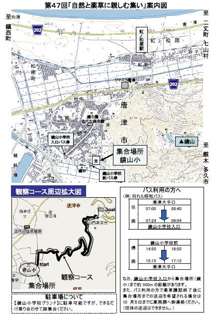 身近に親しまれている薬用植物の名前、見分け方、効能、使用方法などについて、自然とふれあいの中で学ぶことにより、薬用植物に対する正しい知識の普及を図る。 |