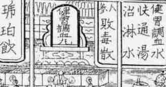 | 健胃調血丸の看板は店内に家伝薬などが 据えて置かれる「据看板」 |