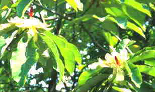 | F モクレンの仲間では遅れて大花をつける ホオノキ モクレン科 大きな花と葉が特徴。見所:北山ダム周辺・5月連休頃 |