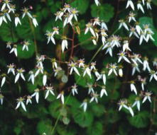![]() ユキノシタとは、花びらを雪に見立てたもの、 また、冬、寒さに耐えて、雪の下でも生育する ことに由来する名前である。 日本、中国に分布し、佐賀県内では 西部低山地の陰湿な岩場に自生するが、 一般には、庭園に植栽 されたものを見ることが多い。 生の葉は、山菜として、てんぷらや、ゆでて煮付け、 浸し物、ゴマ和え、酢味噌和えなどにする。 薬用には、葉を5〜7月に採集し、乾燥したものを 解熱、鎮咳、解毒に用いる。 民間では、耳から膿汁が出るのに、生葉汁で耳内を 拭く。その効果には、有効、無効の両論がある。 佐賀の方言:キジンソウ、キリンソウ、オコタチ、 チチハレ、チドメ、チリンソー、チンコロバナ、ビジンソウ |